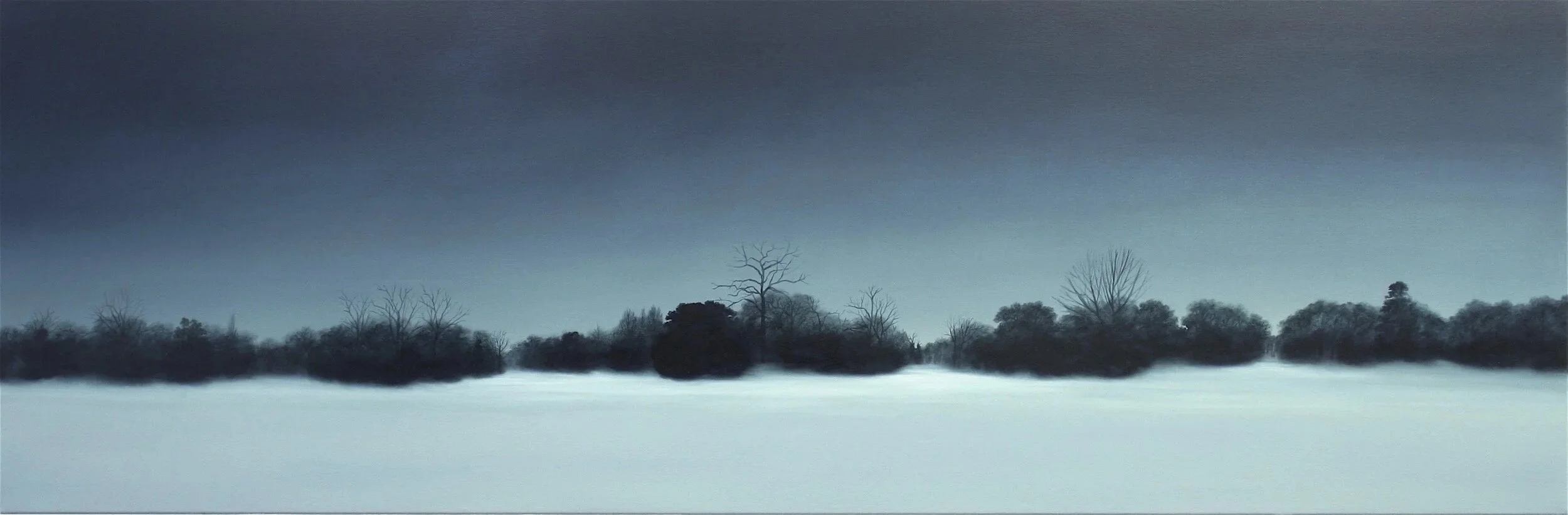 The paintings in the Somewhere In Between series of 2007 developed ideas which originated from a trip to the Arctic Circle in the winter of 2006. After experiencing polar nights in the far north of Norway, frozen snow fields and the half-light of daytime, my imagined landscapes took on a different feel. I reimagined the familiar landscapes I knew as large scale deserted snowscapes, sometimes pictured at night. This reimagining became the predominant subject of my paintings for a number of years.